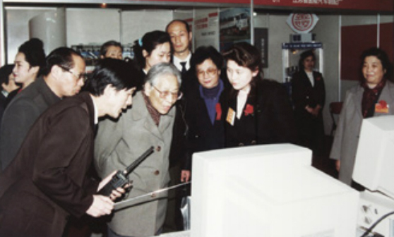 1986 年国家领导人参观华杰公司公路桥梁 CAD 科技成果展台