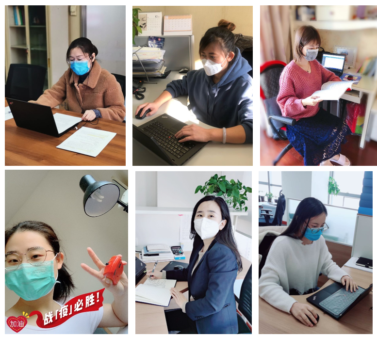 “新冠”疫情爆发以来,公司分工会和行政部作为疫情防控小组重要成员,担负着办公场所安全管理、应急物资筹措等重要工作,工会主席陈克丽、行政部主任谢棣不定期到部门检查复工防疫情况;行政部朱佳宇、宋雅靖每天两次为到岗员工测量体温,从不失约;人力资源部王蕾、中南分公司周敏一直兢兢业业的担任“表姐”、“表妹”角色,负责统计公司每日各类健康报表。公司全体女员工以细致入微的工作,确保公司各项疫情防控措施的落实。