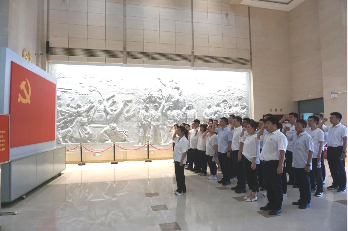 下午,在周恩来邓颖超纪念馆瞻仰厅内,全体党员面向鲜红的党旗,庄严地举起右手,重温入党誓词。一句句铿锵有力的誓言在展厅内回荡,更加坚定了党员们的初心与使命。